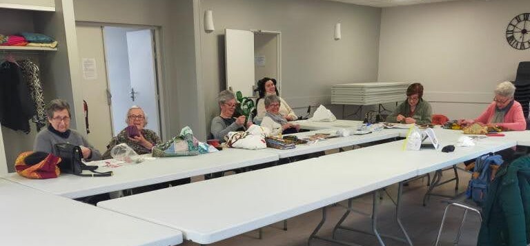 Activités diverses de travaux d'aiguilles (patchwork, tricot, broderie). Il s'agit avant tout d'une après-midi où les petites mains se retrouvent pour travailler sur leurs ouvrages et papoter. Un projet de travail en commun (patchwork) est en cours de réalisation.